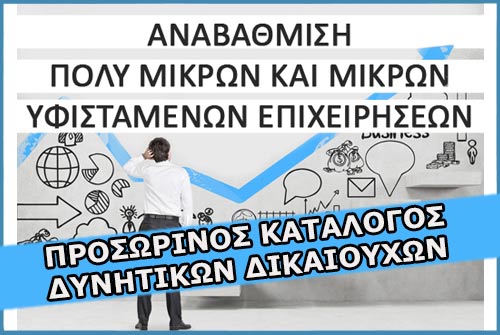 Ανακοινώθηκε την Παρασκευή 7/7/2017, η Απόφαση του Προσωρινού Καταλόγου Δυνητικών Δικαιούχων και του Καταλόγου με την βαθμολογική κατάταξη όλων των επιχειρηματικών σχεδίων για την δράση «Αναβάθμιση πολύ μικρών & μικρών επιχειρήσεων για την ανάπτυξη των ικανοτήτων τους στις νέες αγορές» του ΕΠ «Ανταγωνιστικότητα, Επιχειρηματικότητα και Καινοτομία (ΕΠΑνΕΚ)».