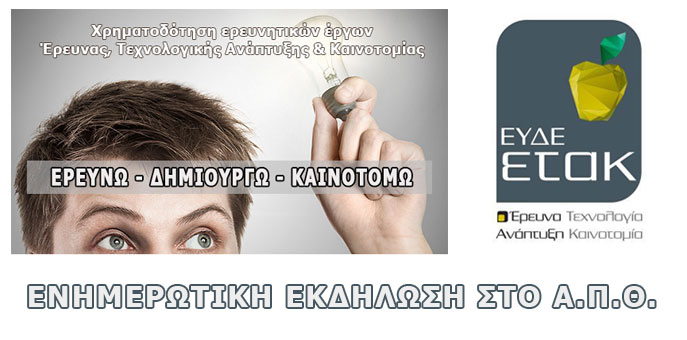 Παρουσίαση της Ενιαίας Δράσης «ΕΡΕΥΝΩ – ΔΗΜΙΟΥΡΓΩ – ΚΑΙΝΟΤΟΜΩ» στο Αριστοτέλειο Πανεπιστήμιο Θεσσαλονίκης, την Πέμπτη 6 Απριλίου 2017